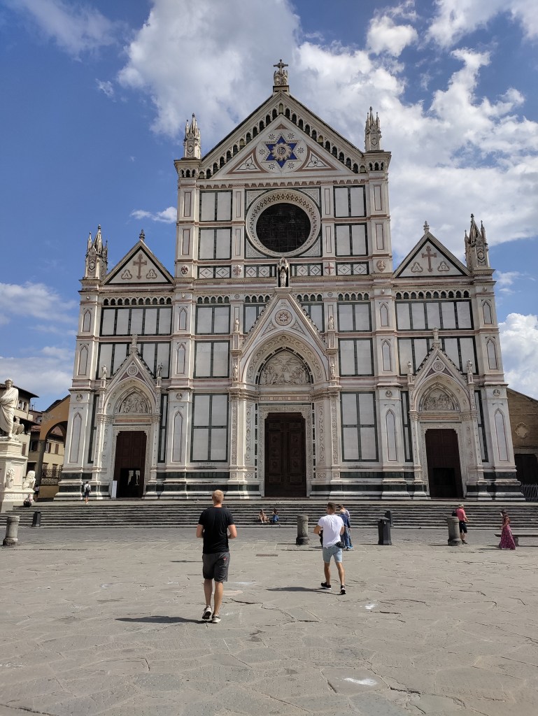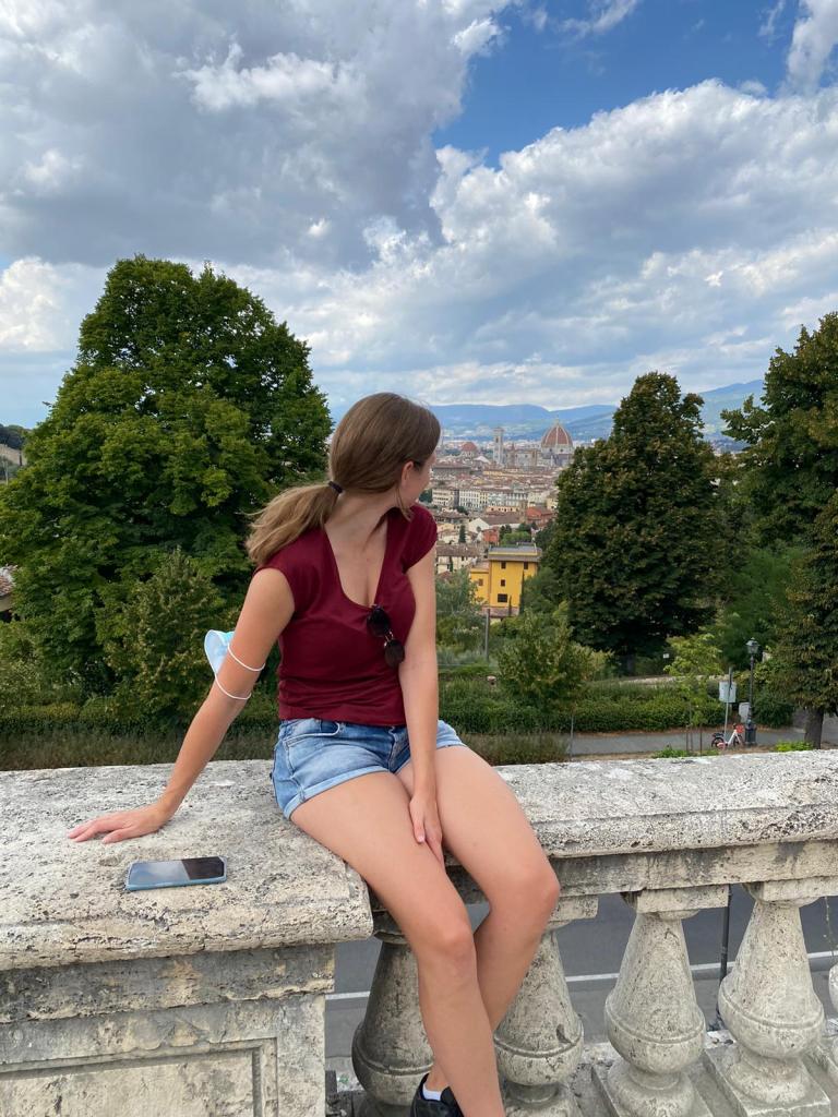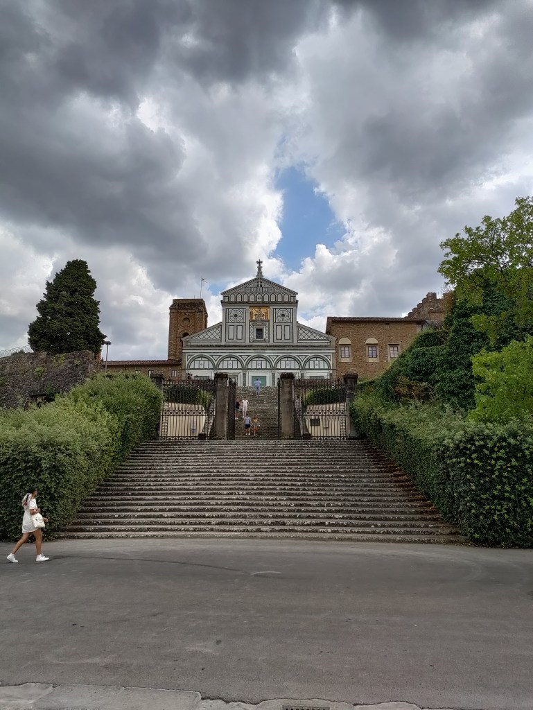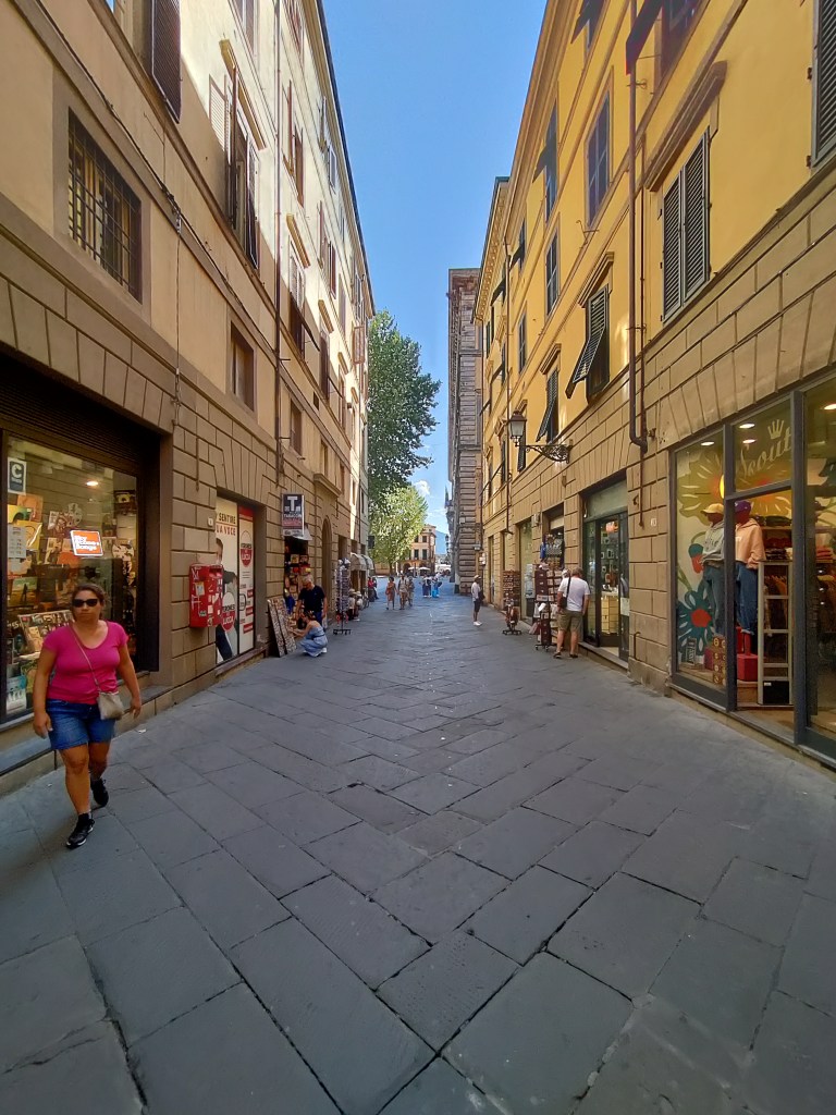 Den vorletzten Tag verbrachten wir in Florenz – meinem absoluten Highlight des Urlaubs! Wir parkten weit außerhalb und wollten über die umliegenden Hügel auf Florenz zu laufen und dann die Stadt erkunden. Diese Idee, die anfangs aufgrund der Strecke etwas abschreckend wirkte, stellte sich als hervorragend heraus, weil mein nach einer halben Stunde einen fantastischen Ausblick auf die gesamte Stadt und die Umgebung hatte! Sogar von hier aus wirkte der Dom inmitten der Stadt gigantisch. Die Zypressen und Olivenbäume in der Landschaft machten die Atmosphäre komplett. Wir bahnten uns also einen Weg zum Fluss Arno, über den auch die weltbekannte Ponte Vecchio führt, die Brücke der Goldschmiede. Um einen Rundgang machen zu können, überquerten wir den Fluss auf einer anderen Brücke und tauchten in die wunderschöne Altstadt Florenz ein. Wir sahen Kirchen und altertümliche Gassen, doch das eigentliche Ziel wartete in der Stadtmitte: die Cattedrale di Santa Maria del Fiore