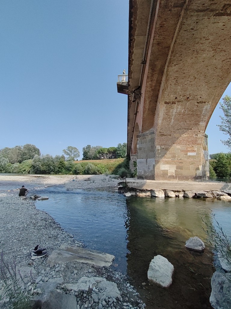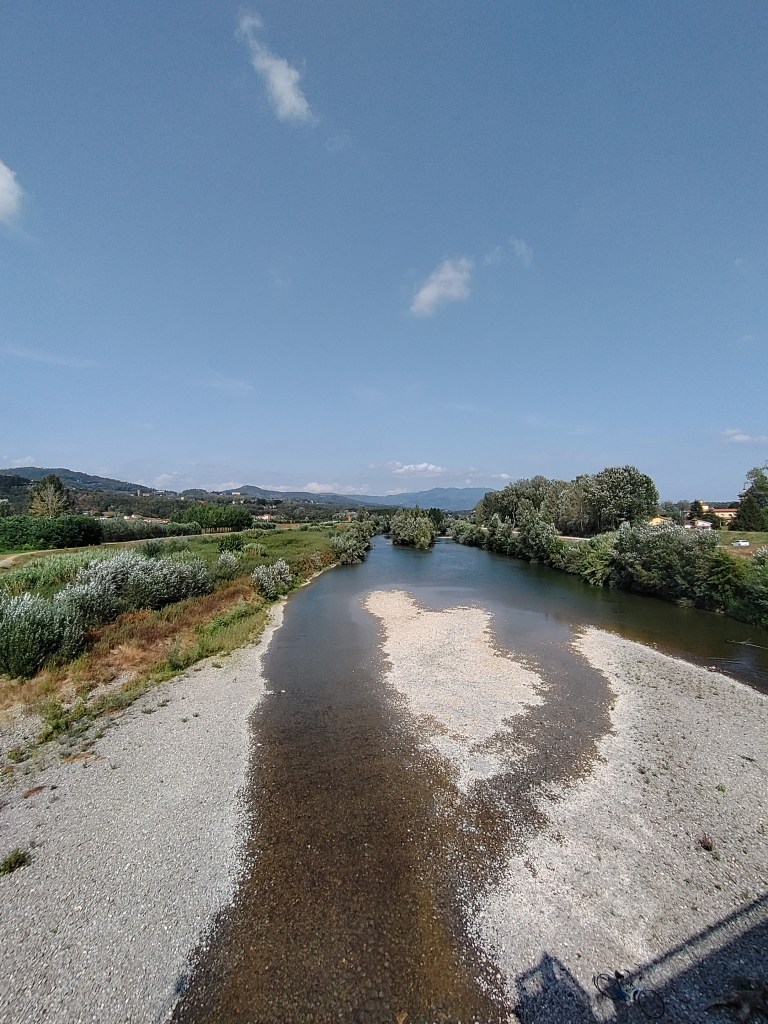 Am ersten Tag, nachdem wir offiziell eingecheckt hatten, beschlossen wir, erst einmal die nähere Umgebung um unsere Unterkunft zu erkunden. Der Ort hieß San Marcario in piano, der Nachbarort vor Lucca Nave. Wir liefen die Hügel hinab in das kleine Städtchen und dann einen Pfad am Fluss entlang. San Macario war ein niedliches, verschlafenes Nest mit einigen schönen Ecken. Vor allem der Fluss war interessant, da er in einem breiten, flachen Flussbett lag und zum Abkühlen im Wasser einlud. Außerdem konnte man ihn an einer Stelle auf einer Brücke überqueren, die am Fluss Schatten spendete.