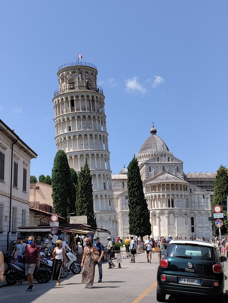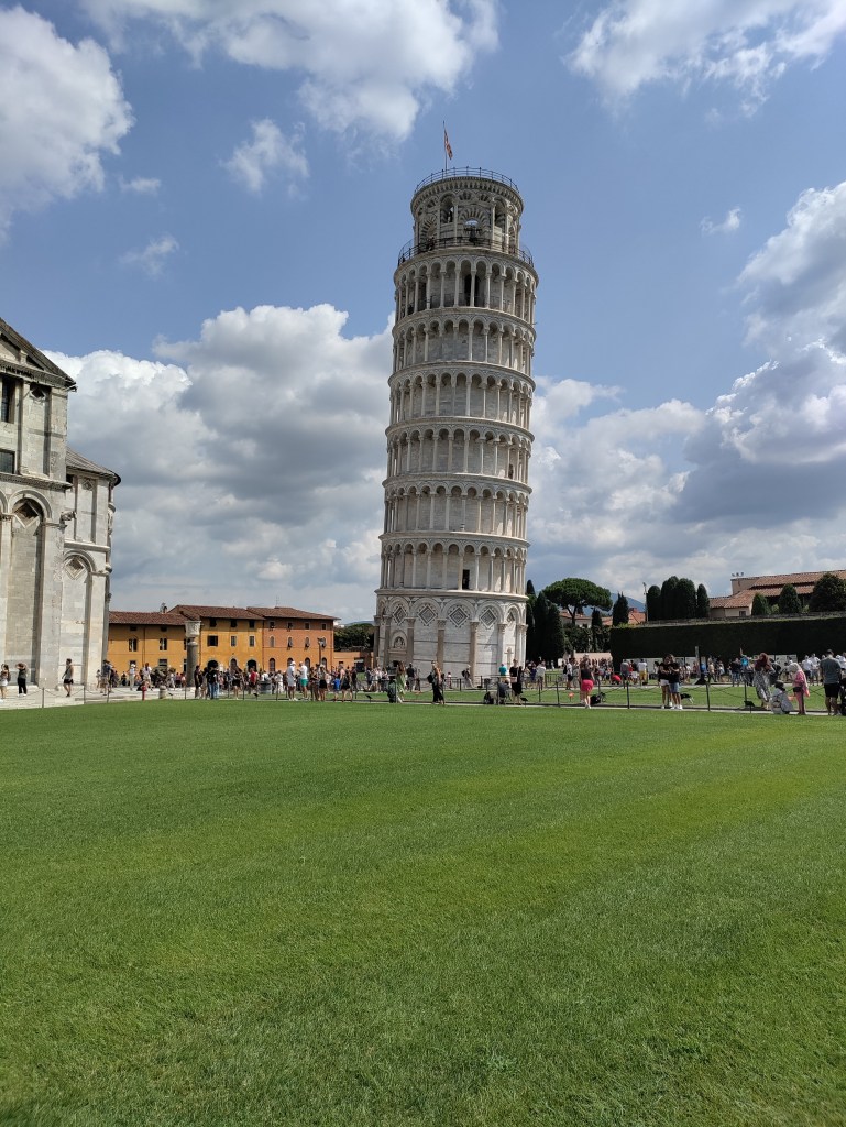 Am nächsten Morgen fuhren wir bald los nach Pisa. Wir wollten uns den schiefen Turm und die darum liegenden Gebäude anschauen, bevor die Touristenmassen eintrafen. Dazu hätten wir allerdings früher los gemusst, weil der Platz selbst früh morgens schon zum Bersten gefüllt ist. Als wir ankamen war auch einiges los und wir schossen nur die obligatorischen Fotos des Turms und verzogen uns dann in die leere Altstadt hinter dem Piazza del Duomo. Auf der Suche nach etwas zu trinken und zu essen, fanden wir ein kleines Café abseits des Trubels und beschlossen uns dorthin zu setzen. Das Cafè hieß Filter Coffee Lab und verkaufte verschiedenstes Gebäck, Kaffeekreationen, selbstgemachte Limonaden und kleine Mittagsgerichte. Es war viel los, aber das störte uns kaum, weil es nicht vergleichbar mit den Restaurants nahe beim schiefen Turm war. Wir genossen also den Kaffee, die Limo und einen kleinen Salat, bevor wir uns auf den Rückweg zum Auto machten.