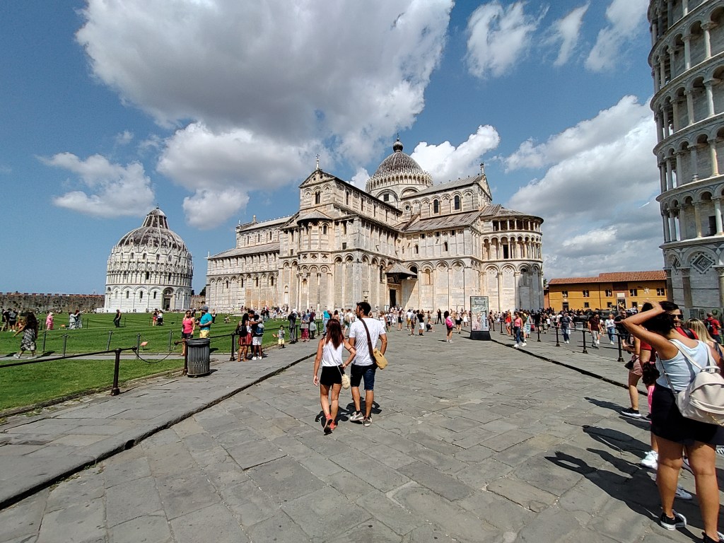 Der schiefe Turm von Pisa – immer noch nicht umgefallen, weil Millionen von Menschen ihn tagtäglich für ihre Bilder stützen.
