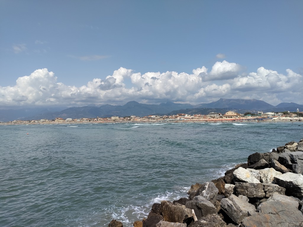 Viareggio – Blick von der Mole aus. Im Hintergrund die Berge
