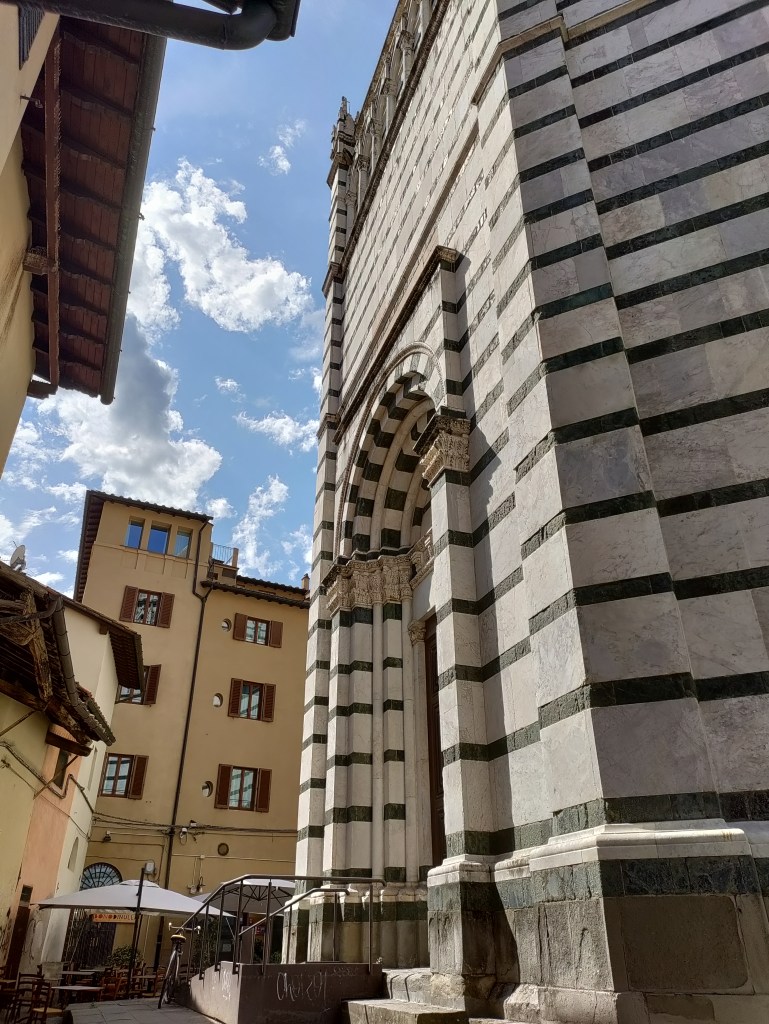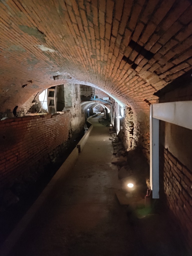 Simon erzählte, dass Pistoia – eine alte unbekannte Stadt westlich von Florenz – schön und verlassen sein soll. Wir wollten uns einen eigenen Eindruck davon machen und fuhren mittags los, um sie zu erkunden. Wieder parkten wir etwas außerhalb, um uns beim Hineinlaufen die ganze Stadt anschauen zu können und erforschten die Gässchen, Plätze und Straßen. Ein Punkt auf unserer Liste war das sogenannte Sotterraneo di Pistoia, der Unterwelt unter der Stadt. Man beginnt die Führung im ehemaligen Krankenhaus und erkundet die Gewölbe, die sich fast unter der gesamten Innenstadt erstrecken. Sie sind so niedrig, dass mein Freund fast immer gebückt laufen musste und ich bei einigen Abschnitten auch. Es war feucht und kühl dort unten, bis auf ein Fenster zur Oberwelt gab es dort kein natürliches Licht. An diesem Fenster jedoch wuchsen Farne und andere Pflanzen.