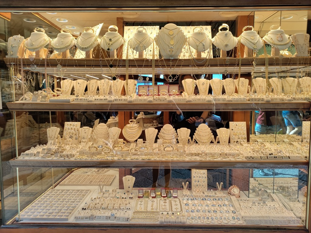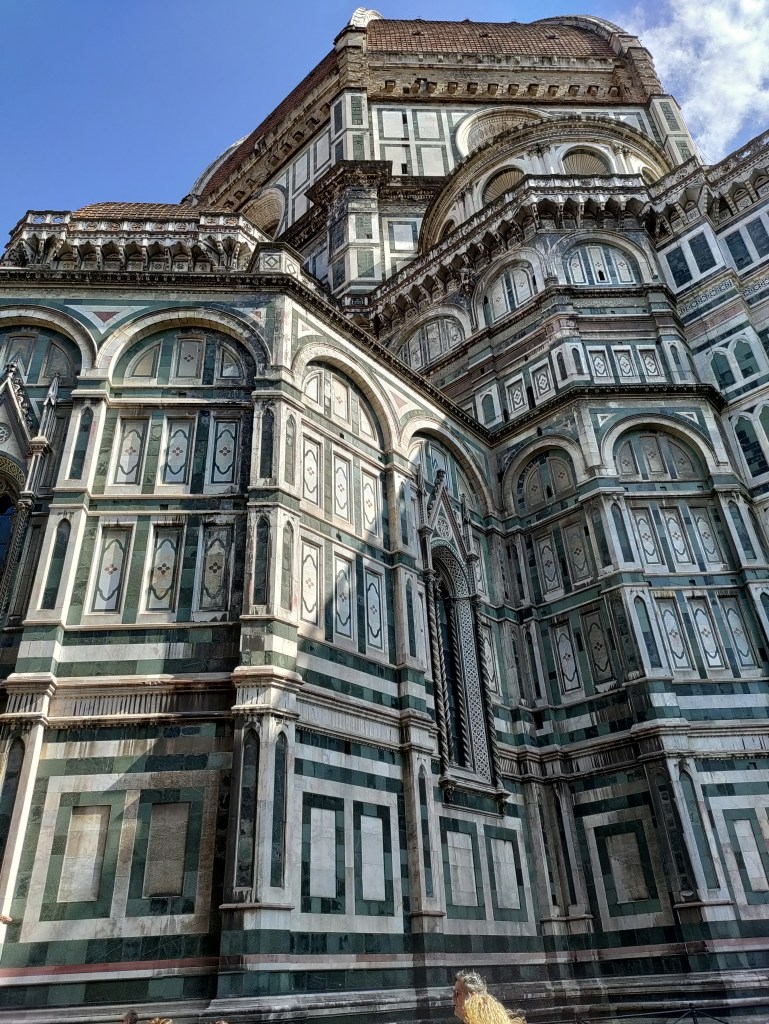 Schon in den Straßen, die stetig darauf zu führten, ragte die Kuppel der Kathedrale über einem auf. Der Anblick war imposant! Doch als wir schließlich vor dem Gebäude standen, fehlte mir die Sprache. Die Wirkung war enorm und auch die Menschenmassen darum herum machten mir nichts aus, sie verschwanden buchstäblich im Schatten der Kirche. So ein riesiges und beeindruckendes Gebäude hatte ich noch nie zuvor gesehen. Die Tatsache, dass die Kathedrale schon im 13. Jahrhundert erbaut wurde, macht sie sogar noch eindrucksvoller. Wir rissen uns nach einer Weile aus der Szene los und marschierten zurück zum Fluss. Diesmal wollten wir den Arno auf der Ponte Vecchio überqueren, um die Goldschmieden zu bewundern. Und tatsächlich stand die Brücke links und rechts voll mit kleinen Häuschen, die selbstgemachten Gold- und Silberschmuck in ihren Schaufenstern ausstellten. Von Imitaten bis hin zu echtem Goldschmuck war alles dabei. Man konnte ohne Weiteres von 50 bis mehrere Tausend Euro hier ausgeben.