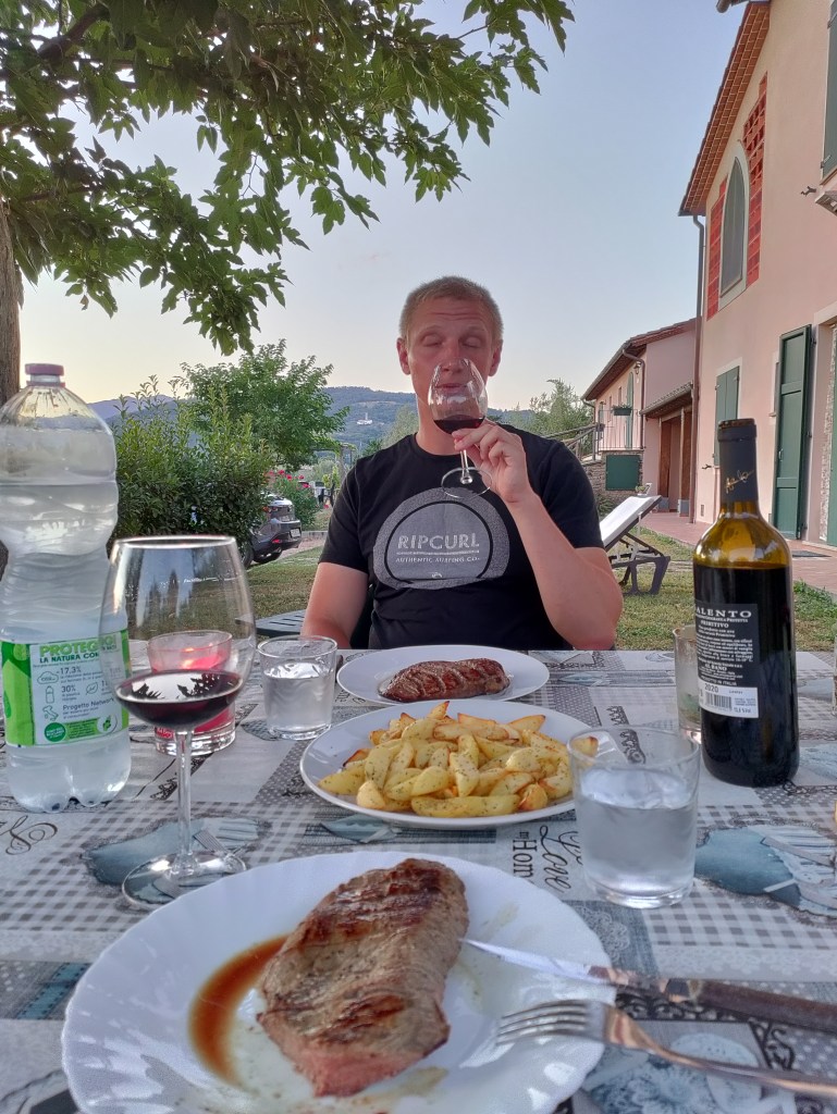 Als wir wieder aus der Unterwelt ans Tageslicht traten, verabschiedeten wir uns von unserer Führungsgruppe und suchten ein kleines Restaurant, wo wir etwas essen und trinken konnten. Irgendwann wurden wir fündig und zur Feier des Tages wollte Simon auch mal auf italienisch Essen und Trinken bestellen. Mit meiner Hilfe funktionierte das sogar echt gut! 😉