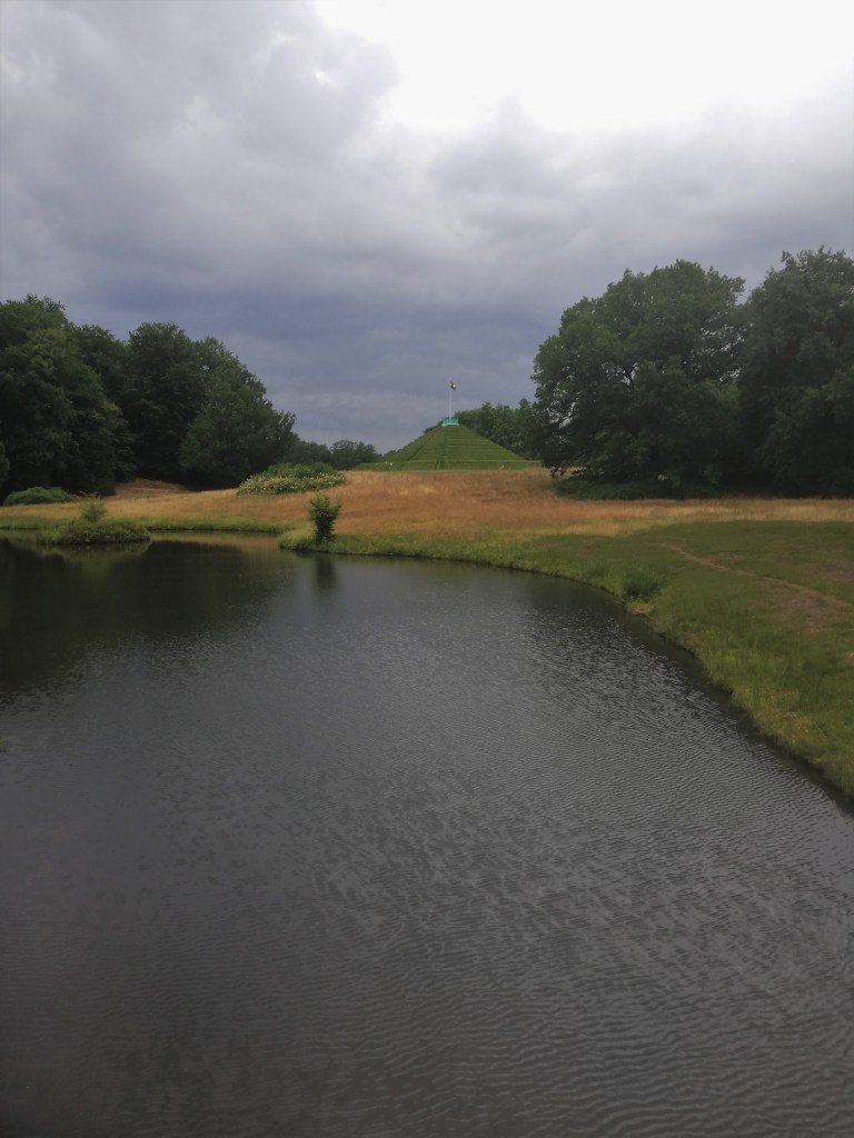 Wir machten uns gegen 15 Uhr auf den Weg zu unserem nächsten Ziel: Der Branitzer Park (auch genannt Fürst-Pückler-Park) ist etwa 15 min südlich von Cottbus gelegen und ein echter Hingucker. Er besteht aus einer riesigen und weitläufigen Parkanlage, die größtenteils natürlich und ohne großen Schnickschnack gehalten wird und aus dem Schloss des Fürsten, das von dessen Großvater im – ich glaube – 18. Jahrhundert erbaut wurde. Grundsätzlich sind die Ausmaße des Parks relativ überschaubar, aber durch das verwinkelte Anlegen der Pfade und Wege, die keinen geradlinigen Weg zulassen, kann man doch einige Stunden dort verbringen, ohne zweimal am selben Ort vorbeigehen zu müssen. Das Schloss selbst kann für 5 Euro (Ermäßigung) betreten werden und innen kann man dann die prunkvolle Einrichtung von damals betrachten. Jedes Zimmer ist anders gestaltet und zwar mit den verrücktesten Farbkombinationen, die man sich nur vorstellen kann. Dazu kommt die Garten-Anlage davor mit den schönen Beeten und einem großen Wein-bewachsenen Tunnel mit antiken Statuen. Der Fürst selbst hat über sechs Jahre den Orient bereist und seine Erfahrungen und Erlebnisse in die Gestaltung des Parks und des Schlosses mit einfließen lassen. Die interessantesten Gebilde im Park sind wohl die zwei Pyramiden. Beide bestehen aus Erde und sind komplett mit Wildblumenwiese bewachsen. Die eine steht auf einer Anhöhe, von wo aus man die zweite, größere Pyramide sehen kann. Diese ist mitten in einem Teich und somit komplett von Wasser umgeben. Ohne Boot könnte man sie auch nicht betreten.