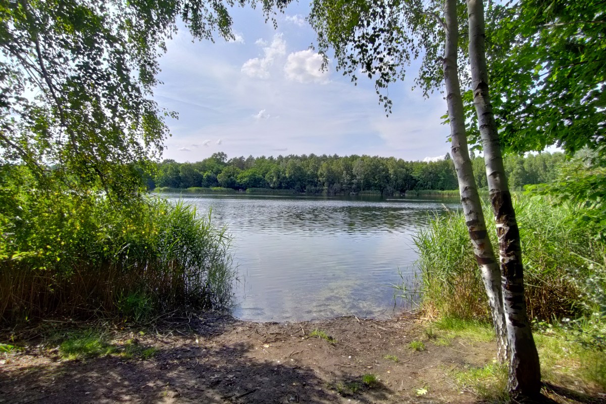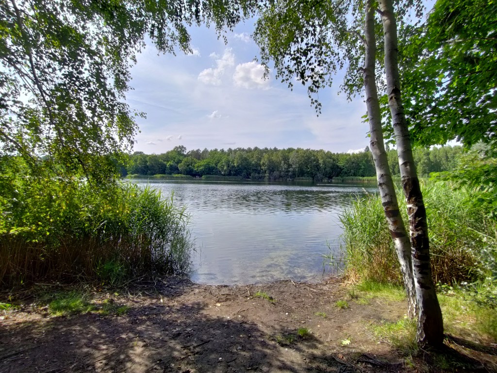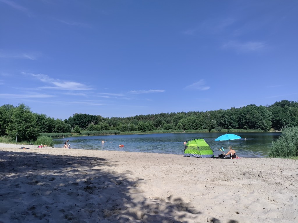 Wir verbrachten dort etwa eine Stunde, bevor wir weiterfuhren. Diesmal zu einem kleinen Badesee, den ich zufällig im Internet entdeckt hatte. Ich parkte das Auto etwa 1 km davor auf einem öffentlichen Parkplatz und wir liefen den Rest zu Fuß zum See. Dort angekommen umrundeten wir das Gewässer etwa zu Hälfte, auf der Suche nach einem schönen Plätzchen. Dabei kreuzten wir auch einen großen FKK-Bereich 😀 Das ist hier im „Osten“ – ich weiß, politisch nicht korrekt – ja Gang und Gebe und tatsächlich macht auch keiner eine große Sache daraus, was alles einfacher macht. Jedenfalls fanden wir dann noch einen größeren Strandbereich, mit weichem, weißem Sand. Hier lagen schon mehrere Personen, aber für einen Nachmittag in den Ferien bei diesem Wetter war erstaunlich wenig los. Sofort machte ich mich auf die Suche nach einem geeigneten Ort zum Umziehen und dann rannte ich auch schon ins klare Wasser. Die Hitze war ja nicht auszuhalten! Wir verbrachten also ein wenig Zeit an dem Strand, wobei ich die meiste Zeit in der Sonne lag und mich bräunte, und beschlossen, diesen See öfters zu besuchen.