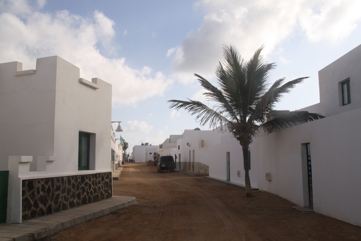 Wir mussten uns etwas beeilen, weil wir die erste Fähre nach „La Graciosa“ erwischen wollten, der kleinen Insel im Norden von Lanzarote. 20 Minuten wilde Fahrt auf der Fähre später erreichten wir den kleinen Hafenort in einer Bucht, der genau so aussah, wie ich mir die kleinen Dörfer in Marokko oder so vorstellen würde, und machten uns dann auch gleich auf den Weg. Wir wollten ein bisschen wandern und Ziel war ein angeblich wunderschöner Strand auf der anderen Seite der Insel. Obwohl Andy noch einen verletzten Fuß hatten, kamen wir ganz gut auf der Sand- und Schotterstraße gen Norden voran. Ständig fuhren Geländewägen mit halsbrecherischem Tempo an uns vorbei, die Touristen die Insel zeigten. Wir erreichten den Strand nie, weil wir zu früh links abbogen und sowieso ein bisschen unter Zeitdruck standen, weil wir die letzte Fähre zurück nach Lanzarote vor der Mittagspause, der Siesta, erwischen wollten. Ansonsten hätten wir den ganzen Nachmittag auf der kleinen Insel verbringen müssen und wären ein ganzes Stück hinterhergehangen was unser Tagesziel betraf, denn wir wollten es noch ganz in den Süden schaffen, bevor es dunkel wurde.